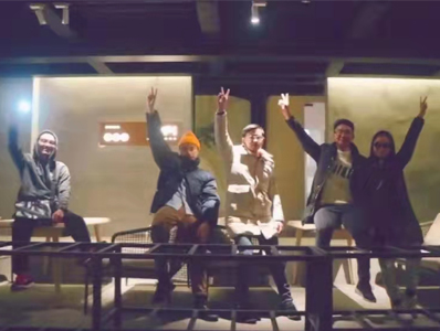 在露天平臺的茶水間,同事在緊張的工作之余放