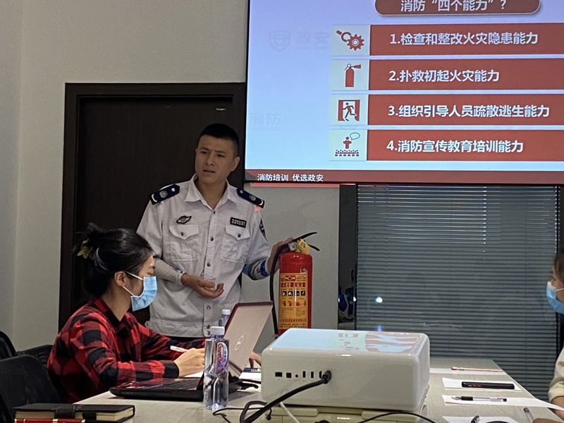 2022年7月23日為進一步增強社會單位員工消防安全意識和自防自救能力,不斷提高單位內部消防安全管理水平,最大程度預防和減少火災事故的發生。7月23日上午,政安消防走進四川博文網絡科技有限責任公司,將“消防課堂”搬進企業,為企業全體員工開展消防知識培訓。